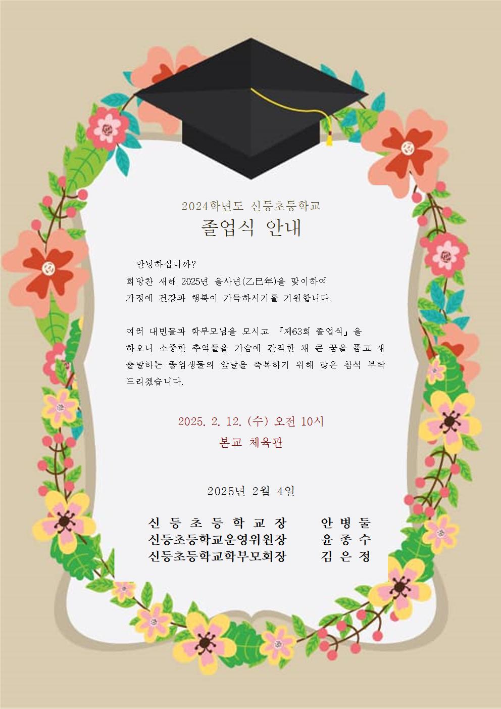2024학년도 제63회 졸업식 안내